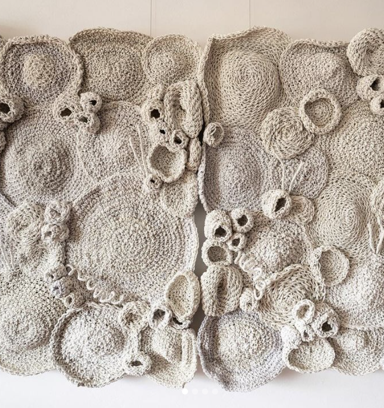 Elissa credits her family for her artistic enthusiasm. A major, formative influence includes learning traditional fibre arts, such as macrame, cross-stitching and knitting from her grandmothers aunts and mother. Perhaps this is why Plastik Kembali’s art showcases an affinity for these traditionally feminine art forms that are practiced by various folk artists worldwide.